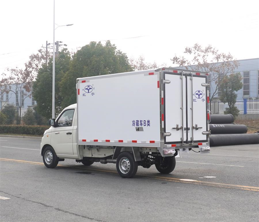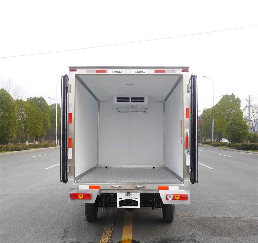 冷藏车厢体为全密封厢板结构,采用完整的2.8mm优质哑光玻璃钢进行板材封闭,具有均衡的结构强度,厢板内部骨架使用断桥隔温处理工艺的加强筋,大幅度提高厢体整体强度;内部填充高密度聚氨酯发泡材料,厢板整体为三明治结构,厢体具有优异的保温特性;