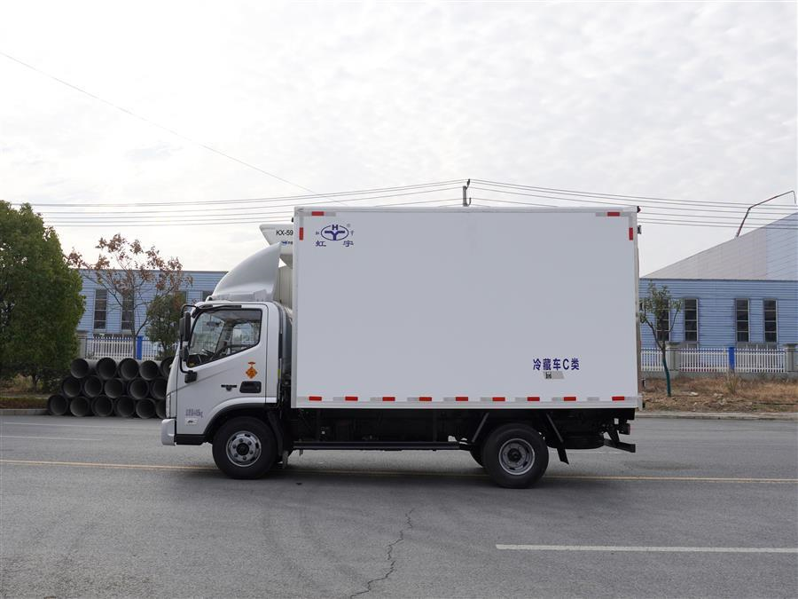 冷藏车制冷温度可达零下20°(驾驶室内可实时调控),根据用户用车需求,可选装不同品牌的高效车载专用制冷机组。